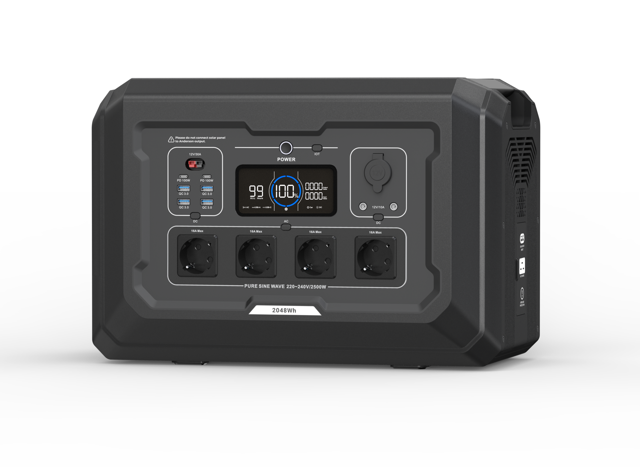 2048 Wh mahutavus ja 2500 W pidev väljundvõimsus (kuni 5000 W hetkeline tipp) võimaldavad toita külmikuid, tööriistu, kohvimasinaid, servereid, telereid ning muid tundlikke seadmeid.