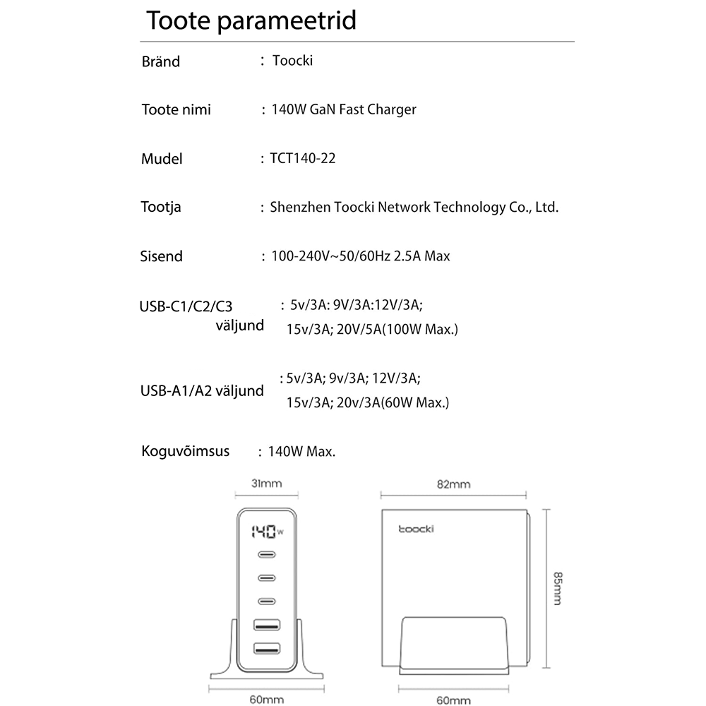 Toocki 140W kiirlaadija